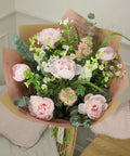 Your bouquet will arrive hand tied out of water ready to be displayed in a vase. Please note, to ensure maximum vase life your Peonies may be delivered in a tight bud.