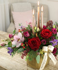 Arranged in Oasis & complete with candles, it's ready to display and enjoy on arrival!